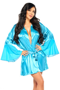 Beauty Night Samira Peignoir Turquoise – turkusowy satynowy peniuar + stringi